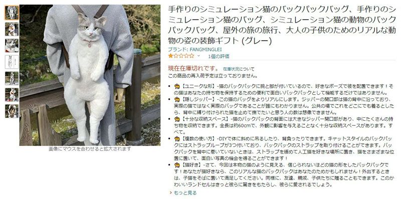 全然違う・・・ 届いた商品が写真と違う 人気の“猫型リュック”、商品写真を無断使用した詐欺通販が横行 作者が注意喚起