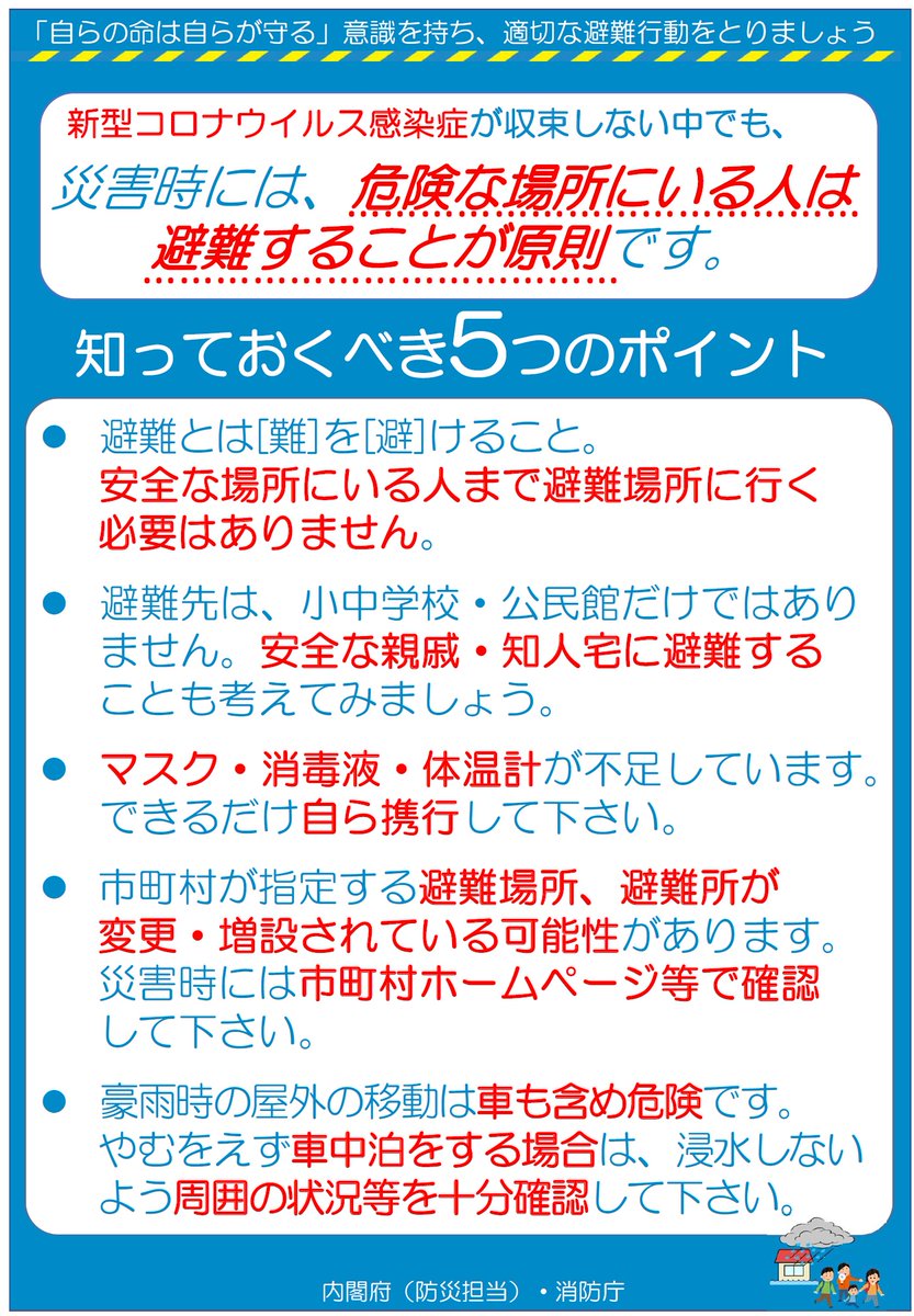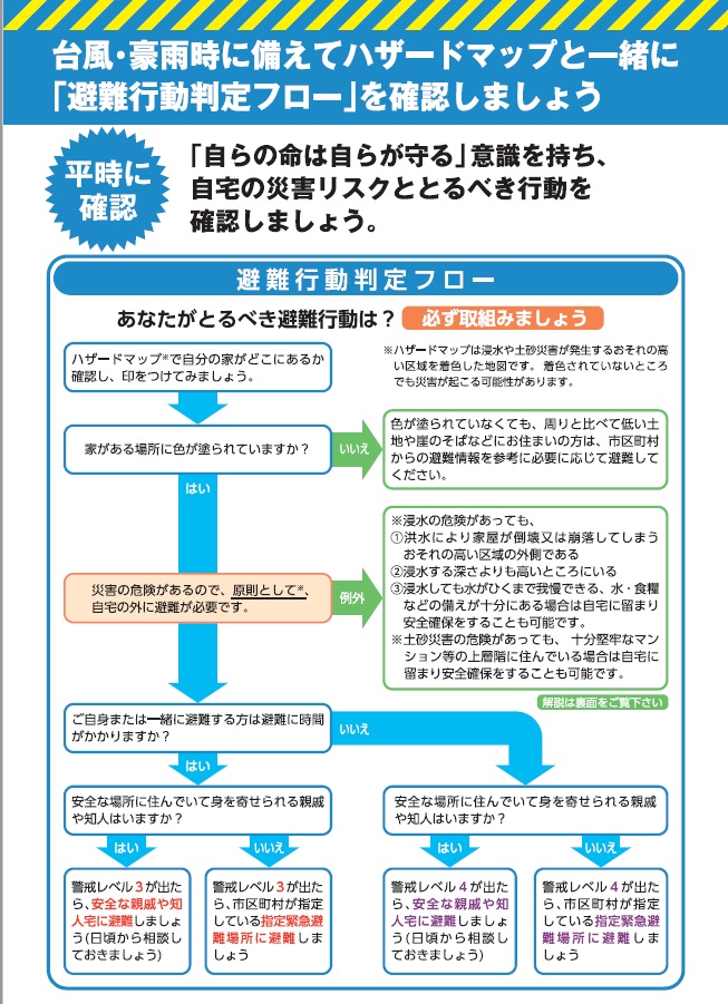 / 平時から台風・豪雨時に備えましょう \ 自らの命は、自らで守る! 自然災害と感染症・・・。 あなたが取るべき避難行動は? 詳しくは↓