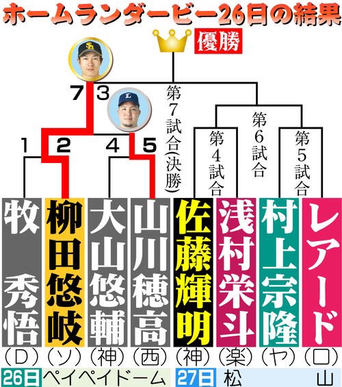 【ホームランダービー???】 大山選手は惜しくも初戦敗退。それでも、大きな放物線でペイペイドームを沸かせてくれました??(中野?) ✅詳細はこちら↓