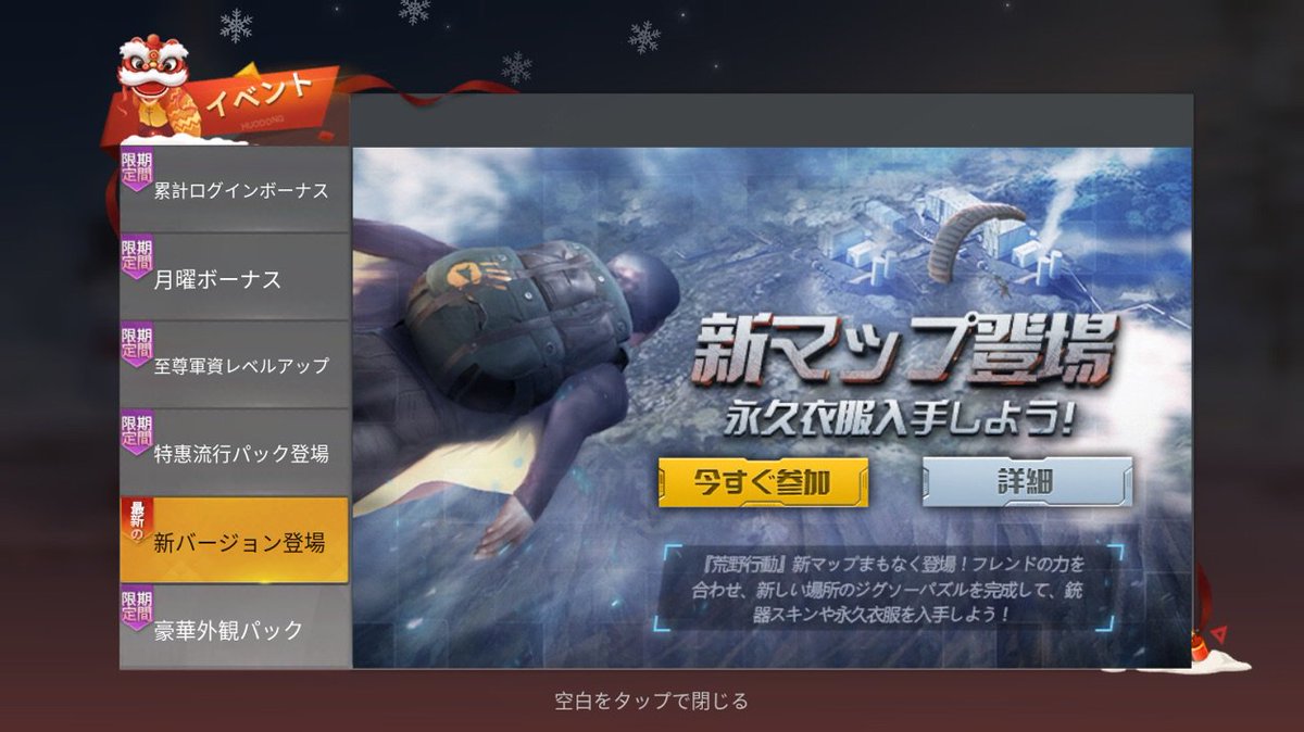 「新バージョン登場」のパズルイベントの終了時間は4月18日(水)の23:59までになります まだ10回の報酬を達成していない方は リンクをこのツイートのコメントで貼って下さい✨ 皆様で協力し合いましょう? #荒野行動新マップ