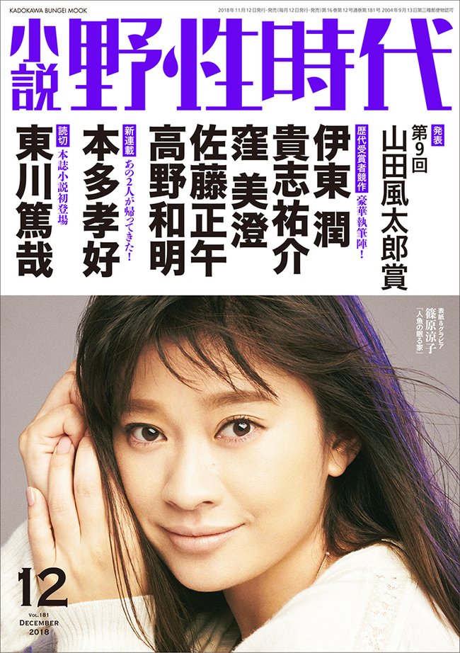 篠原涼子が表紙に登場「小説 野性時代」12月号で「第9回山田風太郎賞」発表!歴代受賞者による豪華競作も