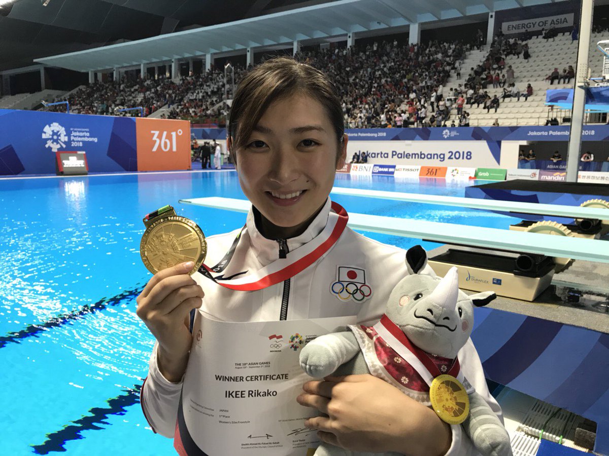#アジア大会 第7日(24日) #競泳 女子50m自由形で大会新記録をマークして金メダルを獲得した池江璃花子選手です。日本選手の1大会最多となる6冠を制しました! #がんばれニッポン #A