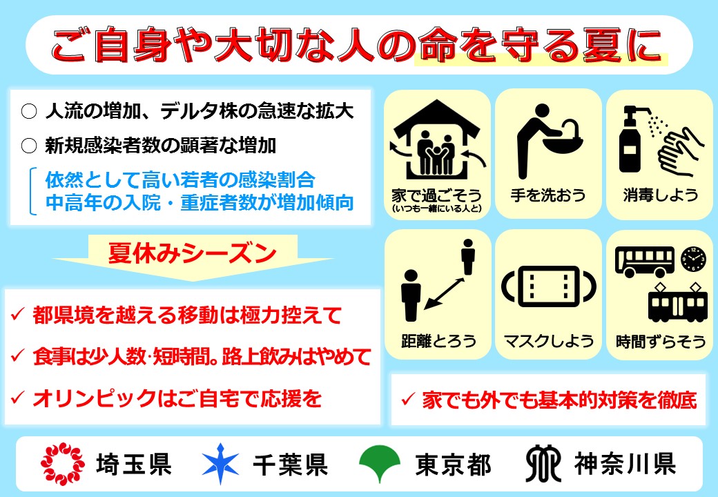 【1都3県共同メッセージ】 今年の夏はご自身や大切な人の命を守り、 そして、来年こそは思い切り楽しむ夏へ #コロナ #緊急事態宣言 #変異株 #夏休み #1都3県 #リモ活