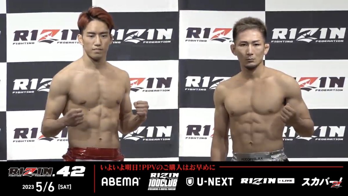 MMA計量結果です??? #RIZIN_LANDMARK5 フェザー級 両者クリア! 牛久絢太郎(28) 20-7 6KO × 朝倉未来(30) 16-3 8KO 1SUB
