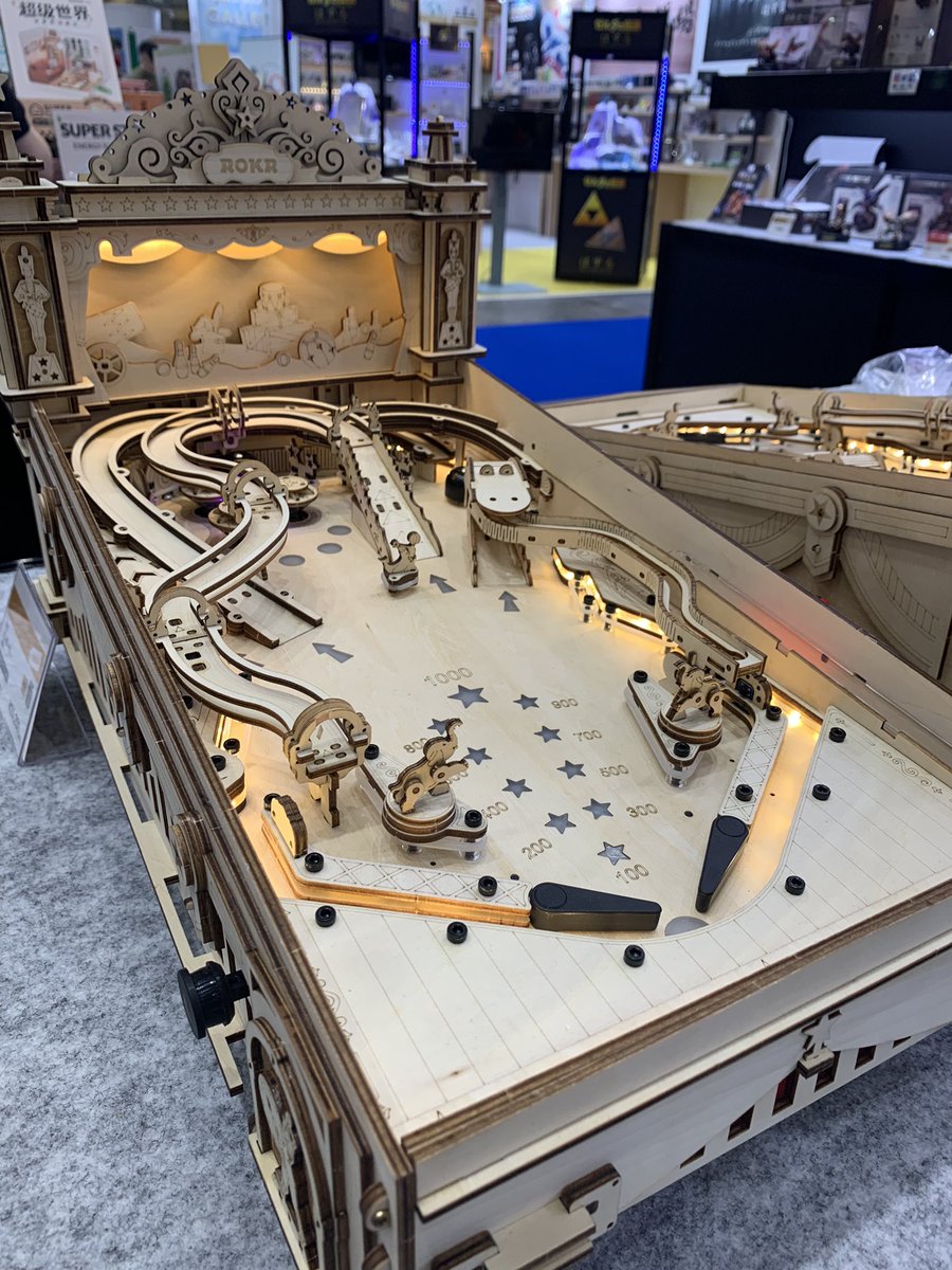 早くも話題のピンボールマシン! 先行ご紹介中。 実物見たかった方、多いみたいです? #東京おもちゃショー #つくるんです #プラザクリエイト #ウッドパズル