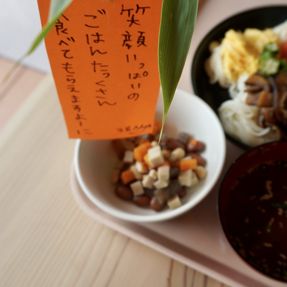 本日は七夕? お昼ご飯は「七夕そうめん」でした? 調理スタッフのみなさんの短冊が嬉しいですね!