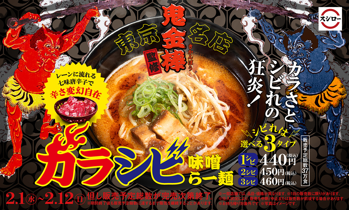 スシロー、東京の名店「鬼金棒」監修「カラシビ味噌らー麺」発売