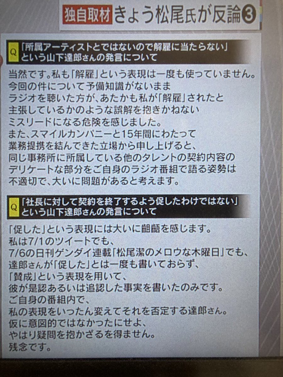 山下達郎「この度、私のオフィススマイルカンパニーと業務提携をしていた松尾潔氏が契約終了となり、そのことについて私の名を上げたことでネットや週刊誌等で色々と書かれております。私はTwi