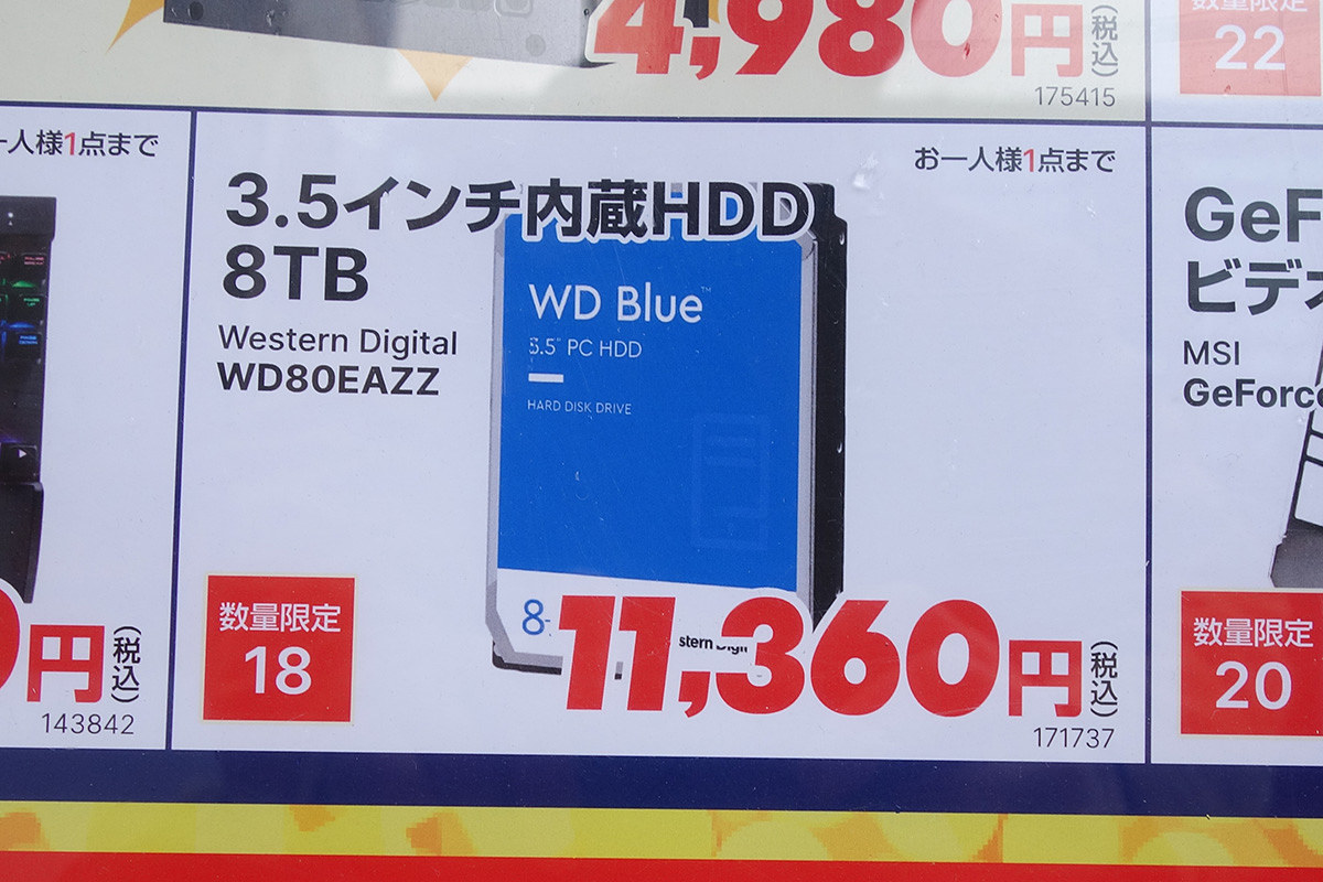 WD Blue HDDの8TBが11,360円