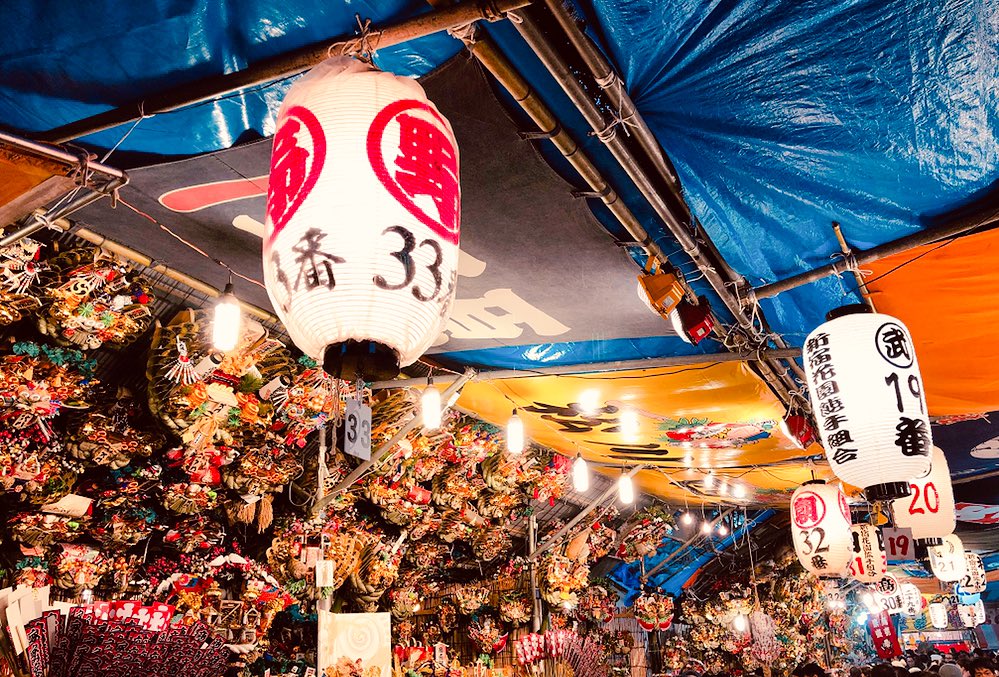 酉の市に行って参りました。 熊手は買わず、りんご飴を購入? 怖くて入れなかったけど、 見世物小屋なんてものがあるのね。