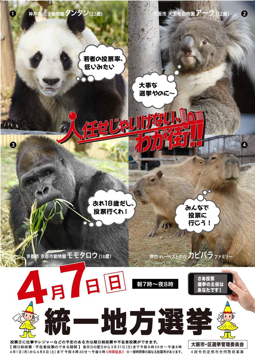 【阿倍野区選挙管理委員会です】 本日は統一地方選挙(市議・市長・府議・府知事)の投票日です。投票時間は午前7時から午後8時までです。有権者の皆さん、必ず投票しましょう。