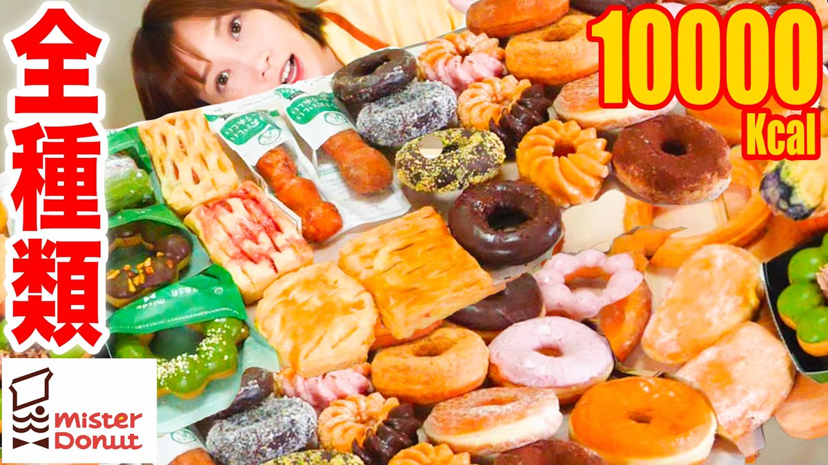 【今日の動画?大食い】ミスドのドーナツ&パイ全種類食べ比べレビュー!王道から新商品まで全部おいしい![森永ミルクキャラメルラテ][40個][10000k