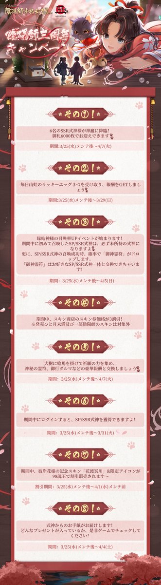 陰陽師三周年キャンペーンの情報をまとめてみました! 皆様、是非ご覧くださいね? #陰陽師本格幻想 #陰陽師三周年