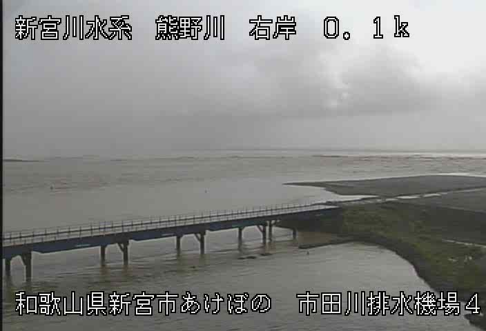 #熊野川 流域では台風第20号により、現在までに約380mmの降水量を観測しました。河口部に形成されていた砂州は川の水に押し流されていることが分かります。 #河川情報 #紀南 #台風第20号