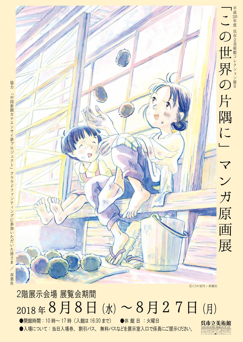 コレクション展Ⅱ「『この世界の片隅に』マンガ原画展」応援プロジェクトとして、このマークのある施設では楽しいイベントを企画しています。内容が決定しましたら随時こちらで紹介していきます。お楽しみに!