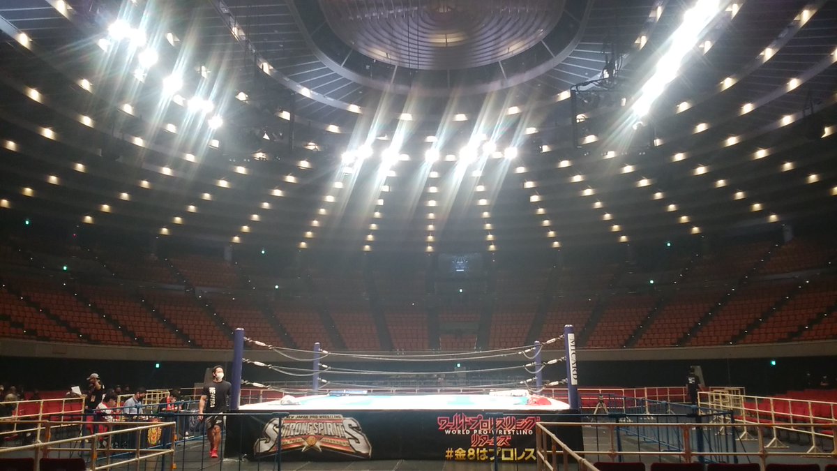 本日はいよいよ大阪城ホール大会です♪会場に入っただけで身が締まる感じです。今日はどんなドラマが生まれるのかドキドキワクワクです❤ #大阪城ホール #新日本プロレス